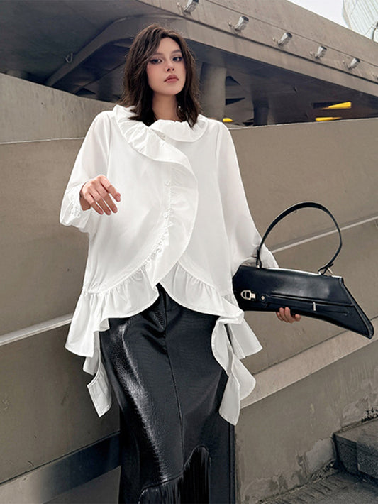 10%OFFラッフルフロントドレープブラウス