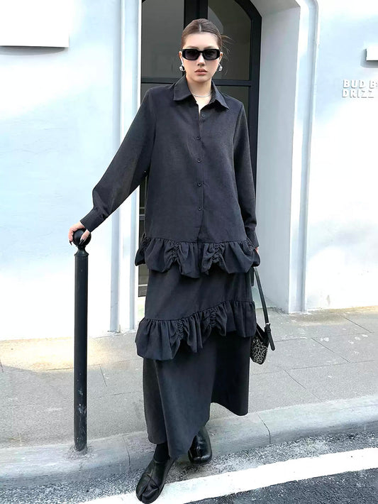 10%OFFフリルレイヤードシャツドレス