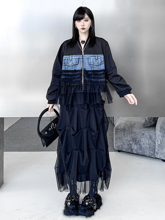 10%OFFデニムドッキングチュールジップトップ