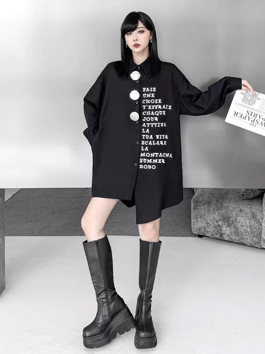 10%OFFグラフィックボタンロングブラウス
