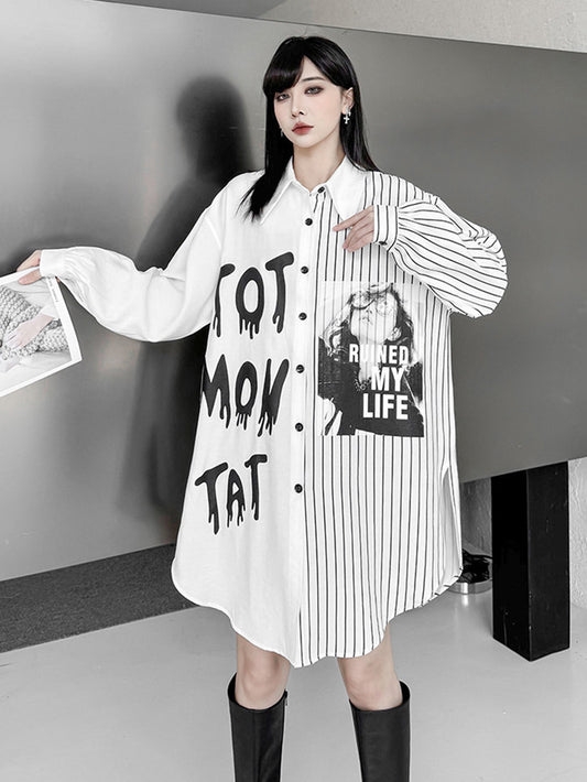 10%OFFグラフィックストライプオーバーブラウス