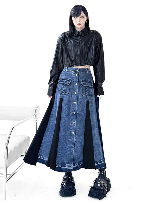10%OFFデニムパネルフレアスカート