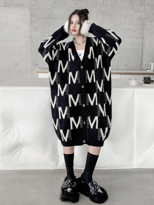 10%OFFエムパターンロングニットドレス