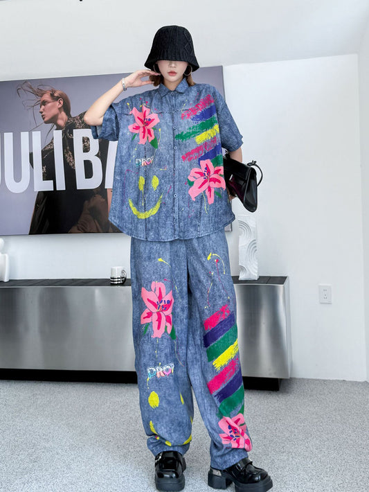 10%OFFシアーデニムプリントブラウス&ショーツ