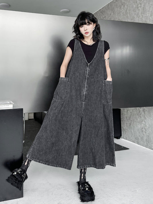 10%OFFノースリーブワイドデニムジャンプスーツ