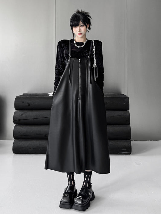 10%OFFフロントジップサスペンダードレス