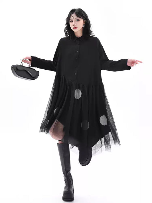 売り切れドットチュールシャツドレス