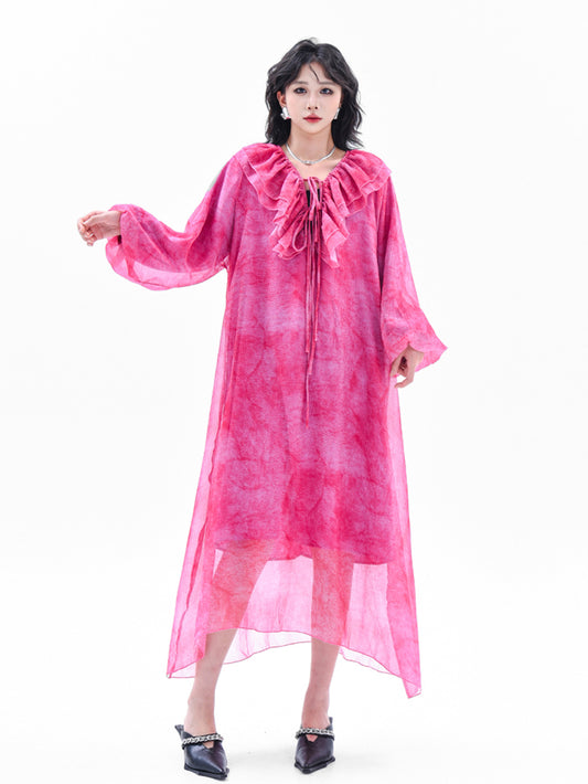 10%OFFフリルネックシアードレス