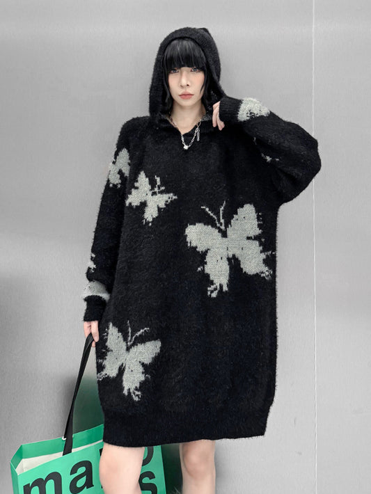 10%OFFバタフライフーディニットドレス