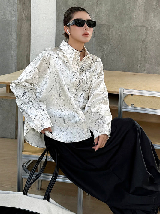 10%OFFクラックプリントモードブラウス