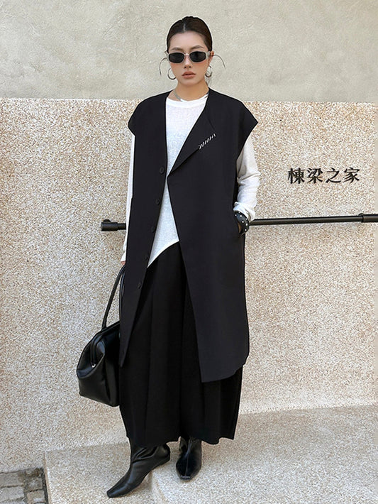 10%OFFノーカラードロップロングベスト