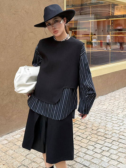 10%OFFストライプレイヤードモードブラウス