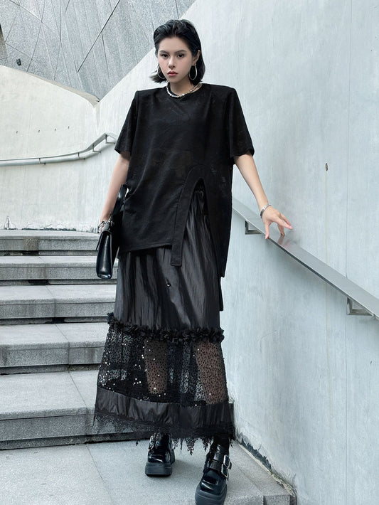10%OFFコントラストメッシュティアードスカート