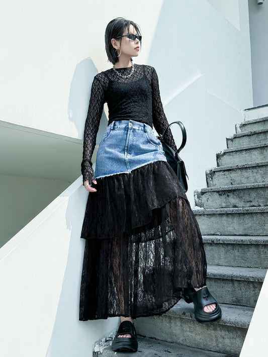 10%OFFデニムレースコンビスカート