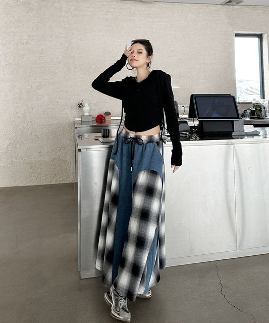 10%OFFコントラストチェックデニムスカート