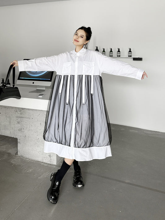 Half combination tailored shirt dress