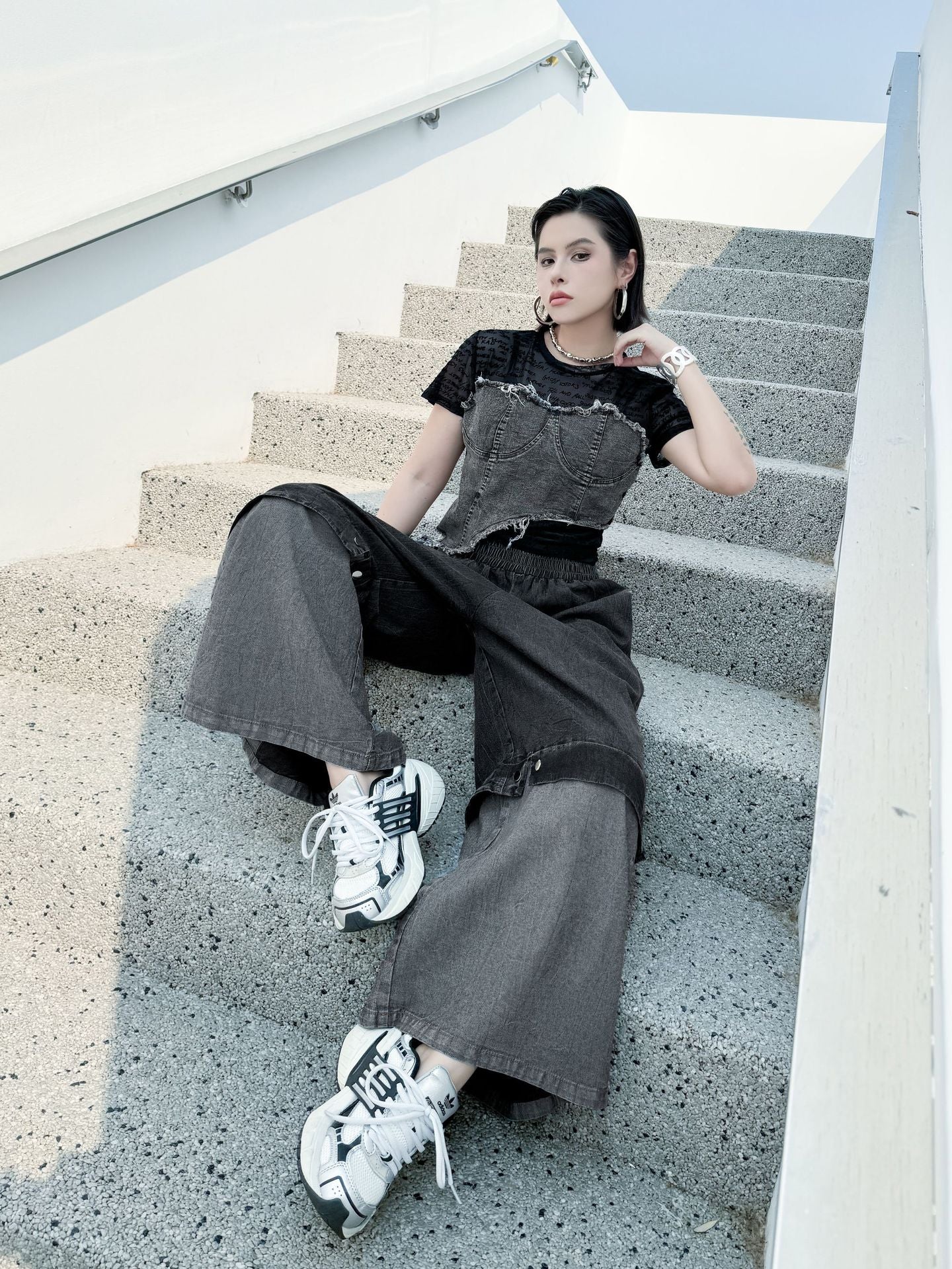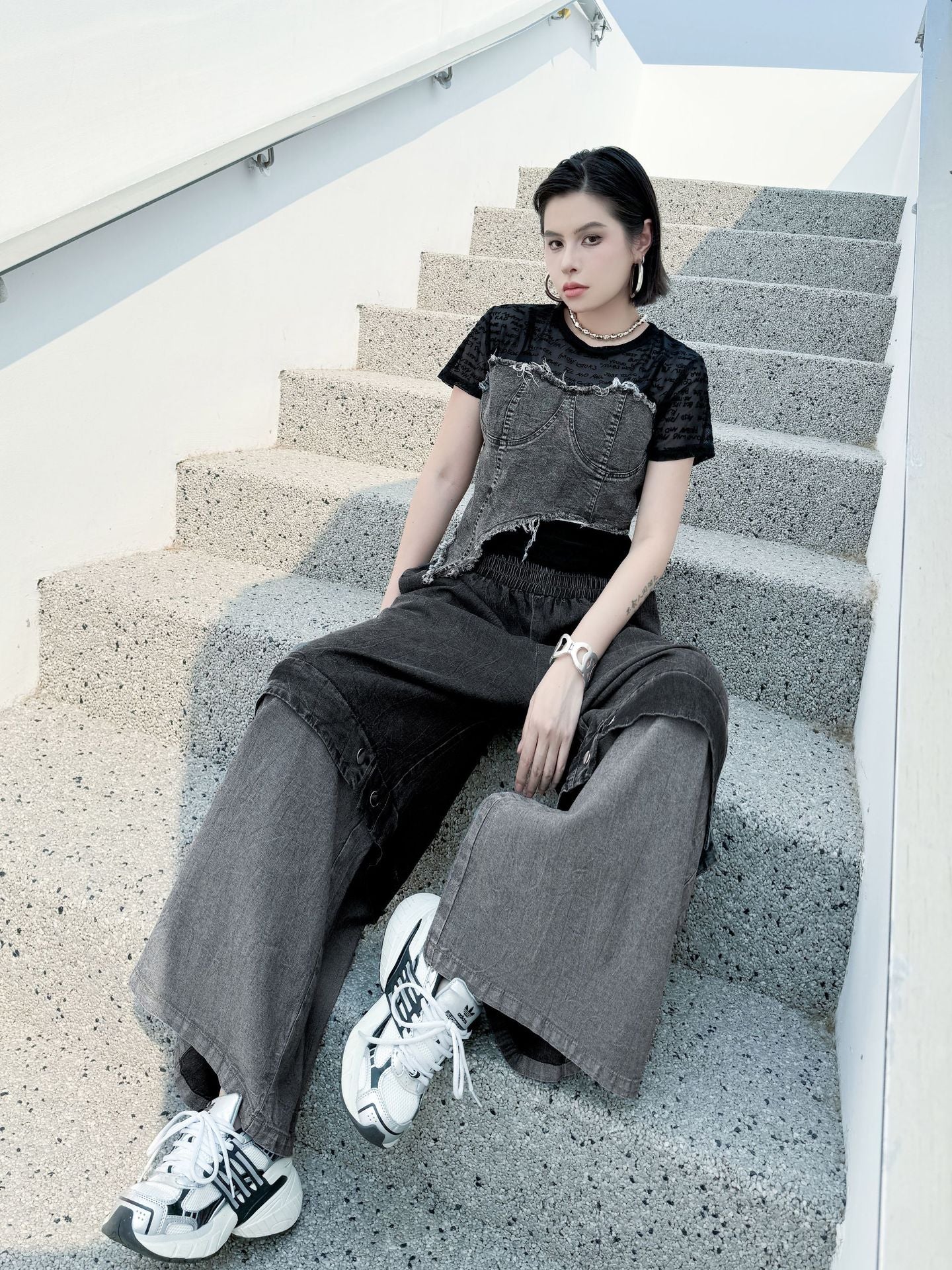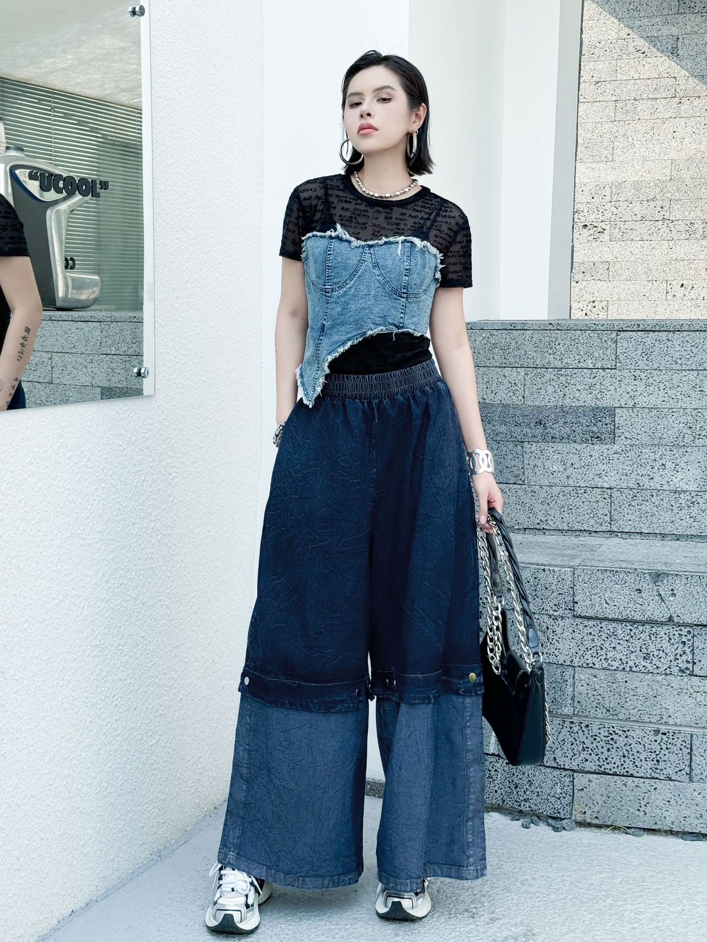This set consists of a blouse with an impressive scarf tie and wide pants with a belt of the same pattern. The blouse has a relaxed silhouette with a draped feel, and the scarf flowing from the neck accentuates the vertical line. The cuffs are gathered for a soft finish, adding just the right amount of volume. The pants have an elastic waistband for a comfortable fit, and the loose material creates a leg-lengthening effect. The overall lightweight construction allows you to enjoy an elegant look as they sway gracefully with every movement.
