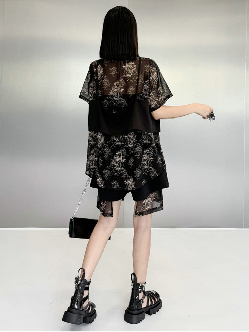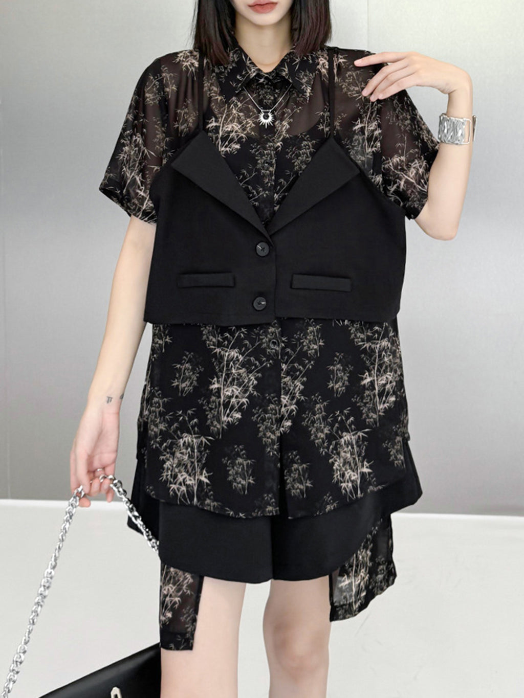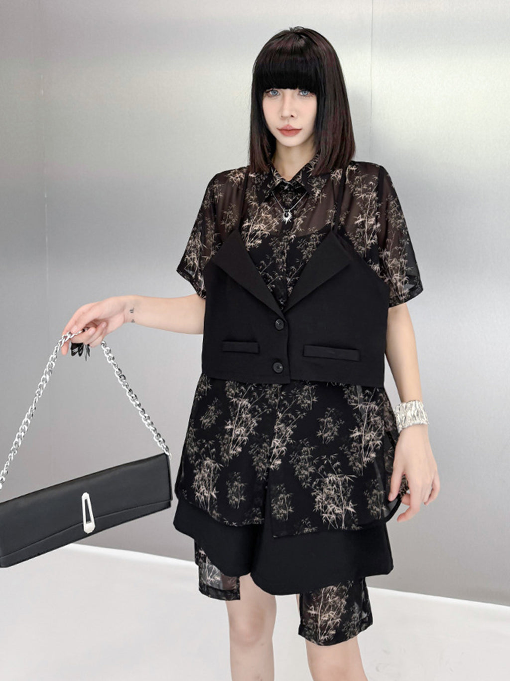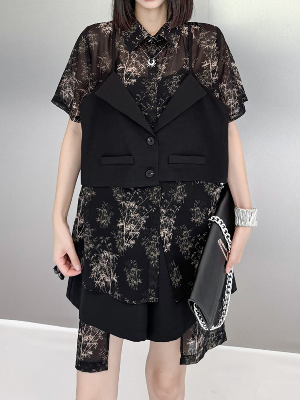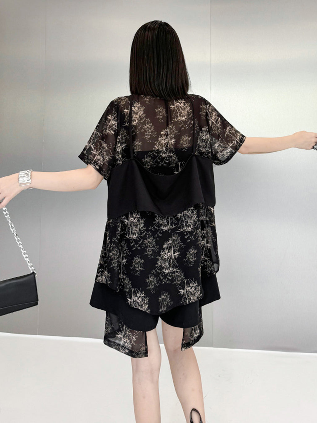This set consists of a blouse with an impressive scarf tie and wide pants with a belt of the same pattern. The blouse has a relaxed silhouette with a draped feel, and the scarf flowing from the neck accentuates the vertical line. The cuffs are gathered for a soft finish, adding just the right amount of volume. The pants have an elastic waistband for a comfortable fit, and the loose material creates a leg-lengthening effect. The overall lightweight construction allows you to enjoy an elegant look as they sway gracefully with every movement.
