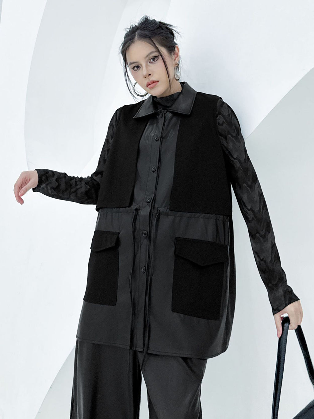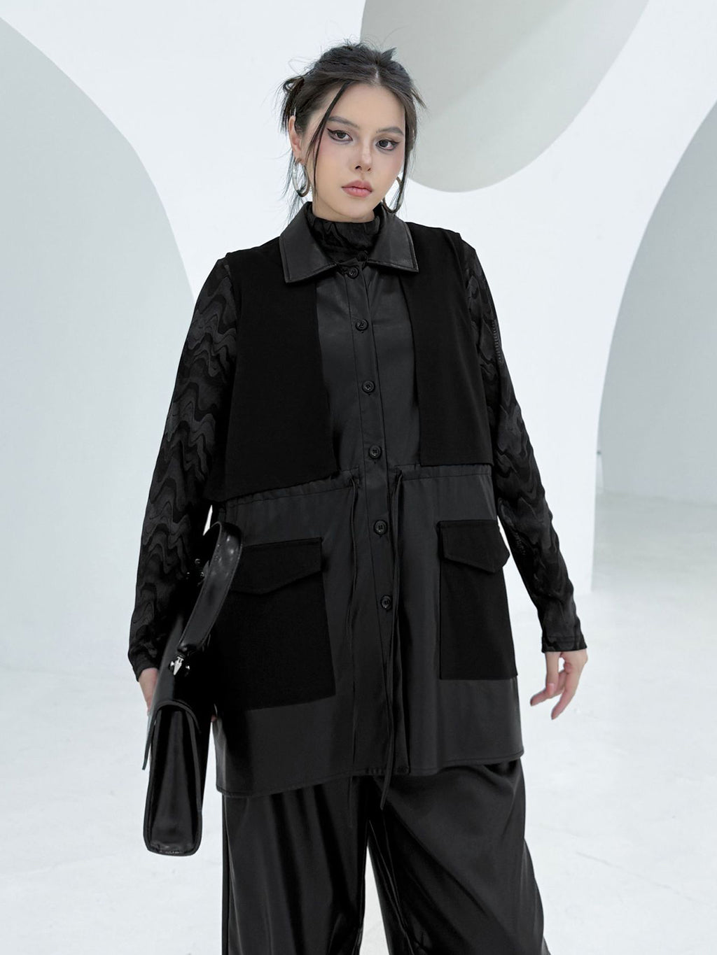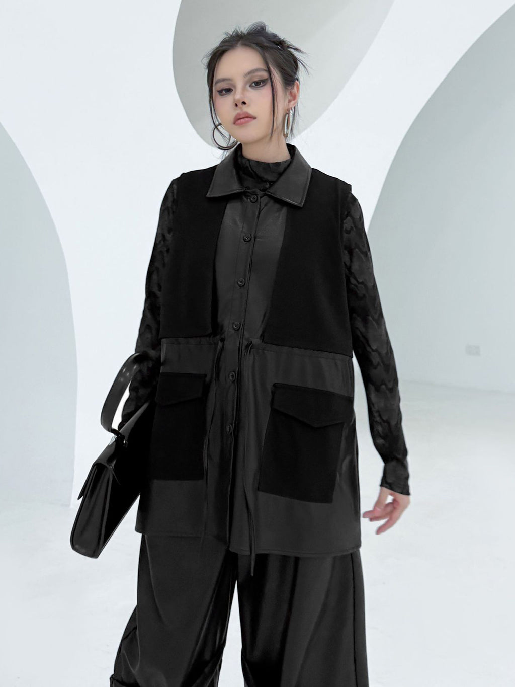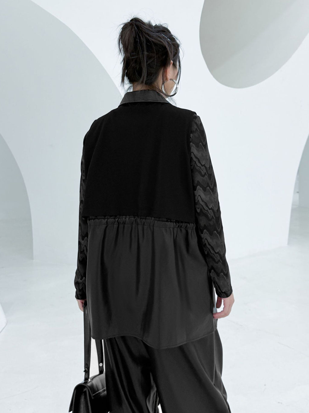 This set consists of a blouse with an impressive scarf tie and wide pants with a belt of the same pattern. The blouse has a relaxed silhouette with a draped feel, and the scarf flowing from the neck accentuates the vertical line. The cuffs are gathered for a soft finish, adding just the right amount of volume. The pants have an elastic waistband for a comfortable fit, and the loose material creates a leg-lengthening effect. The overall lightweight construction allows you to enjoy an elegant look as they sway gracefully with every movement.