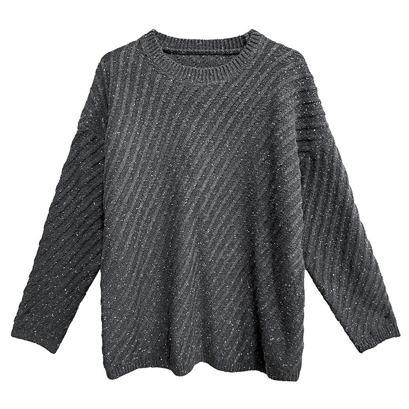 柔らかな糸で編み上げた斜めリブが全体に流れる構築的な表情を生み出すシリーズ。トップスは肩を落としたゆるやかなラインで、自然な抜け感とモードな印象を演出。スカートはウエストから裾にかけて緩やかに広がるストレートシルエットで、動きに合わせてリブの陰影が変化する。編み地の質感が豊かで、単品でもセットでも成立する完成度の高い構成。ミニマルな空間に映える存在感を持ち、洗練された季節感を纏うシリーズ。