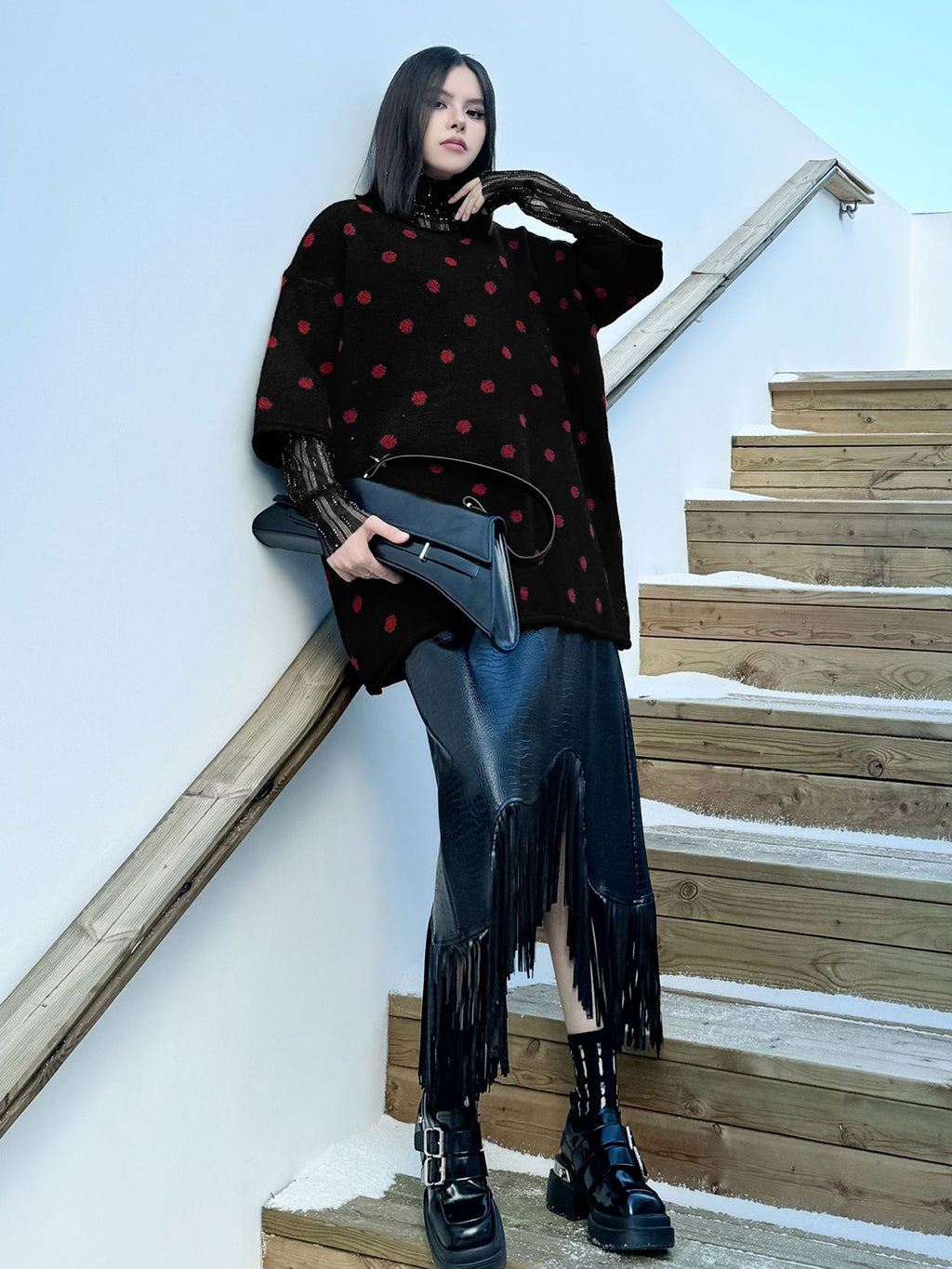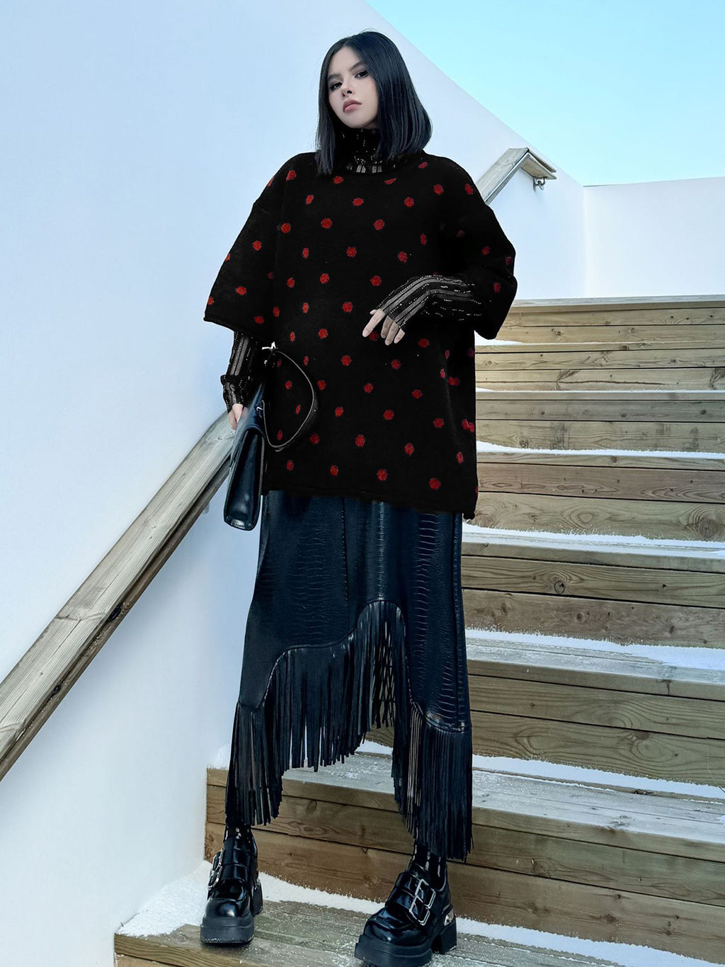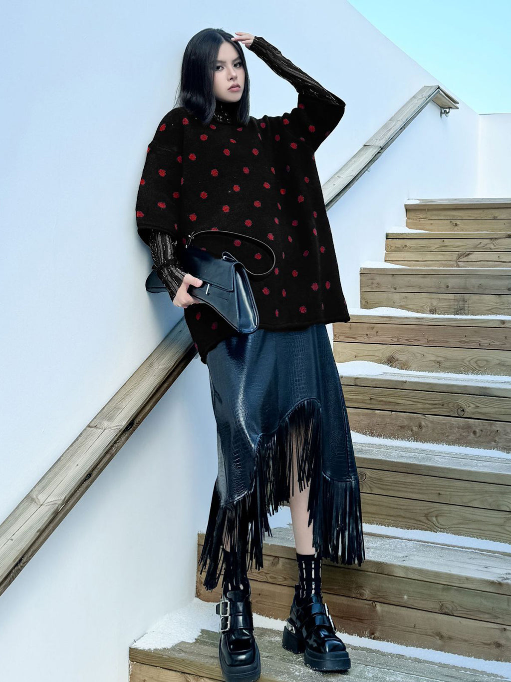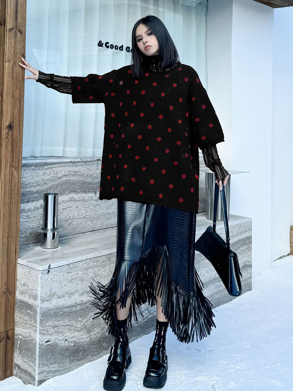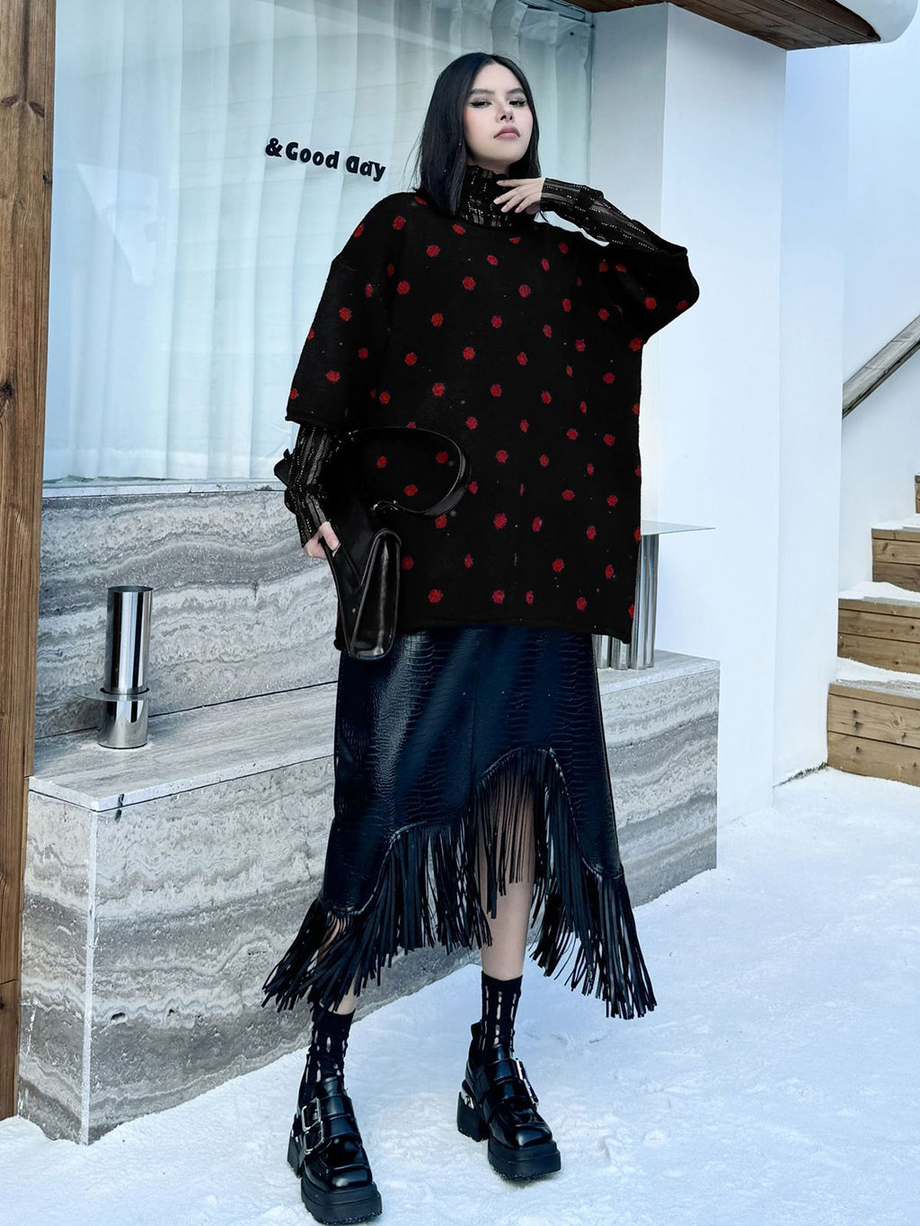 表面にフロッキープロセスでドットを散りばめた立体ニットトップ。短めの袖とゆとりのあるワイドシルエットが絶妙なバランスを生み、インナーとのレイヤードにも適した構成。ベースは軽やかなコットンウールで仕立てられ、暖かさと通気性を両立。滑らかな編み地に浮かぶドットの凹凸が光を受けて表情を変え、ミニマルなフォルムに遊びを添える。