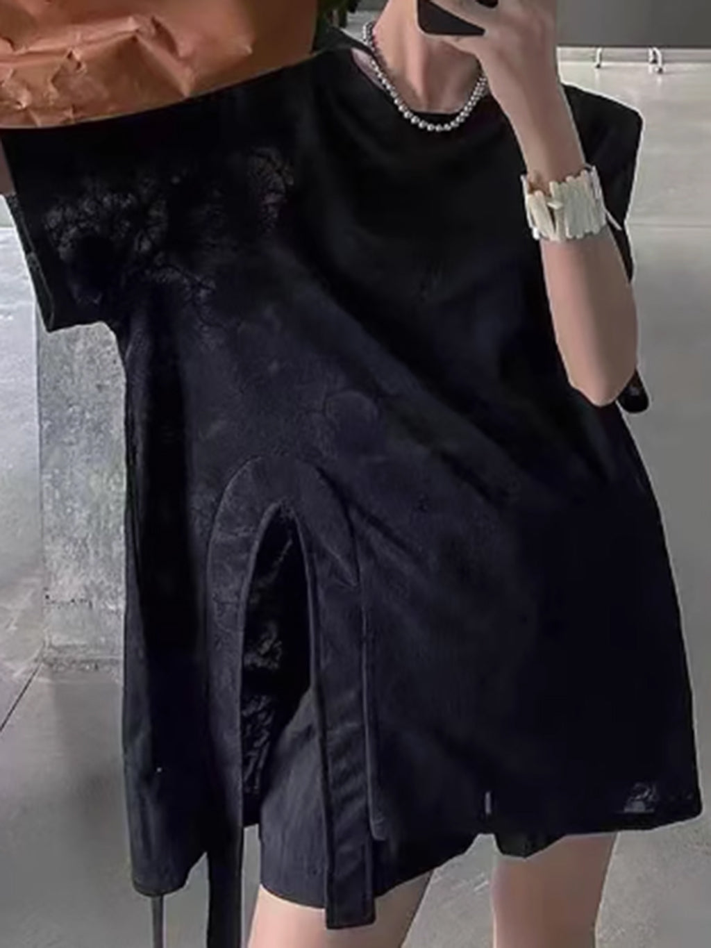 裾に施されたスリットと縦の切り替えラインが、動きと奥行きをもたらすアクセントに。