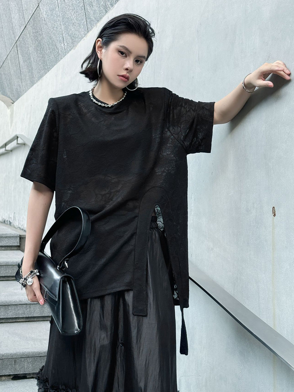 繊細なフラワーレースで仕立てた半袖トップス。全体に花模様が浮かぶ生地を使用し、ほどよい透け感が上品な印象を演出する。ウエストサイドには、レースで仕立てた立体的なタブ付きの大胆なドレープデザインを施し、コーデに立体感をプラス。柔らかな綿麻混の素材で肌触りも快適。ゆとりのあるシルエットで、パンツにもスカートにもマッチ。