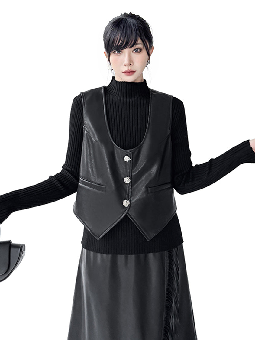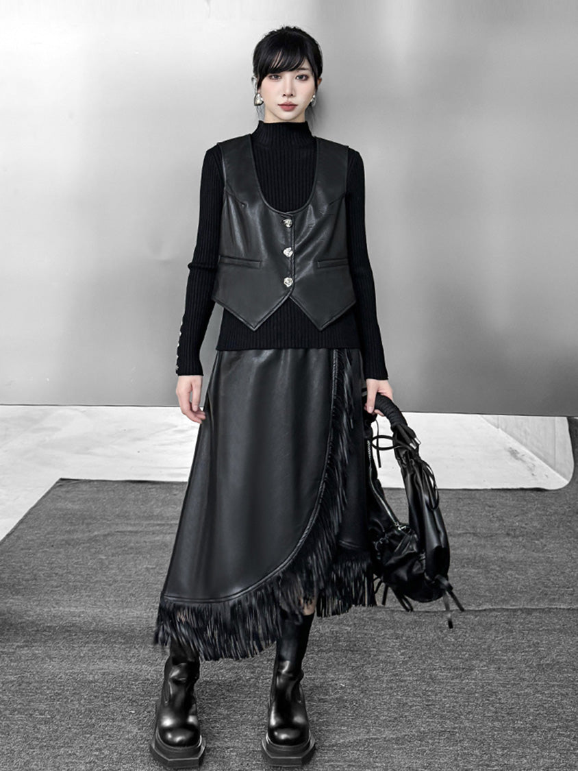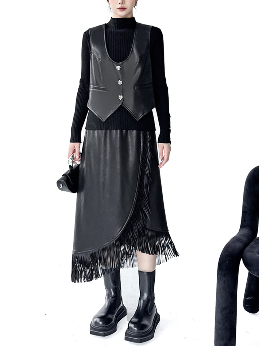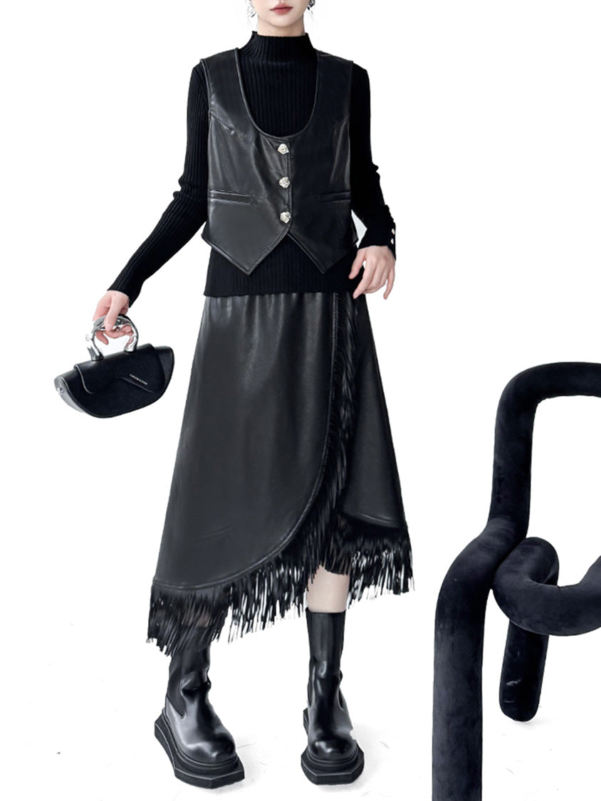 厚みのある生地にフリンジを走らせたベストと、流れを描くスカートで構成されたシリーズ。