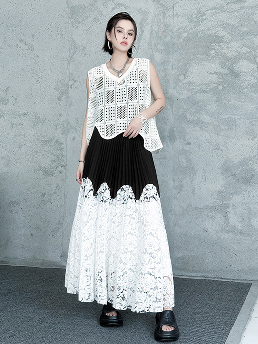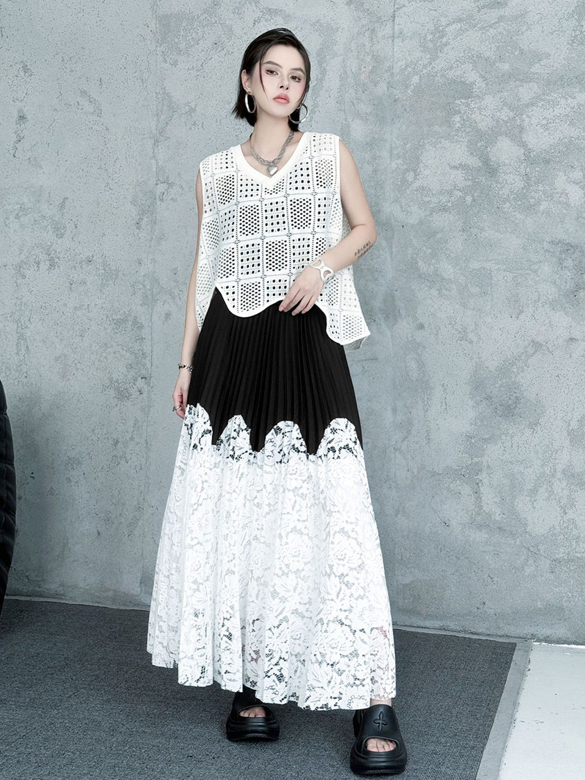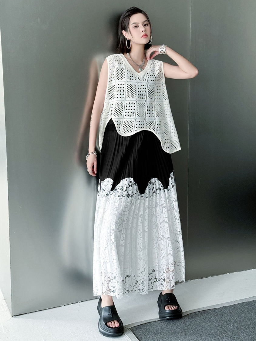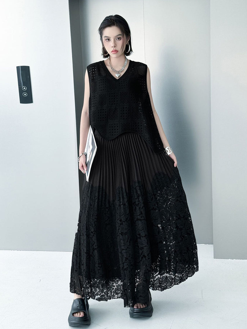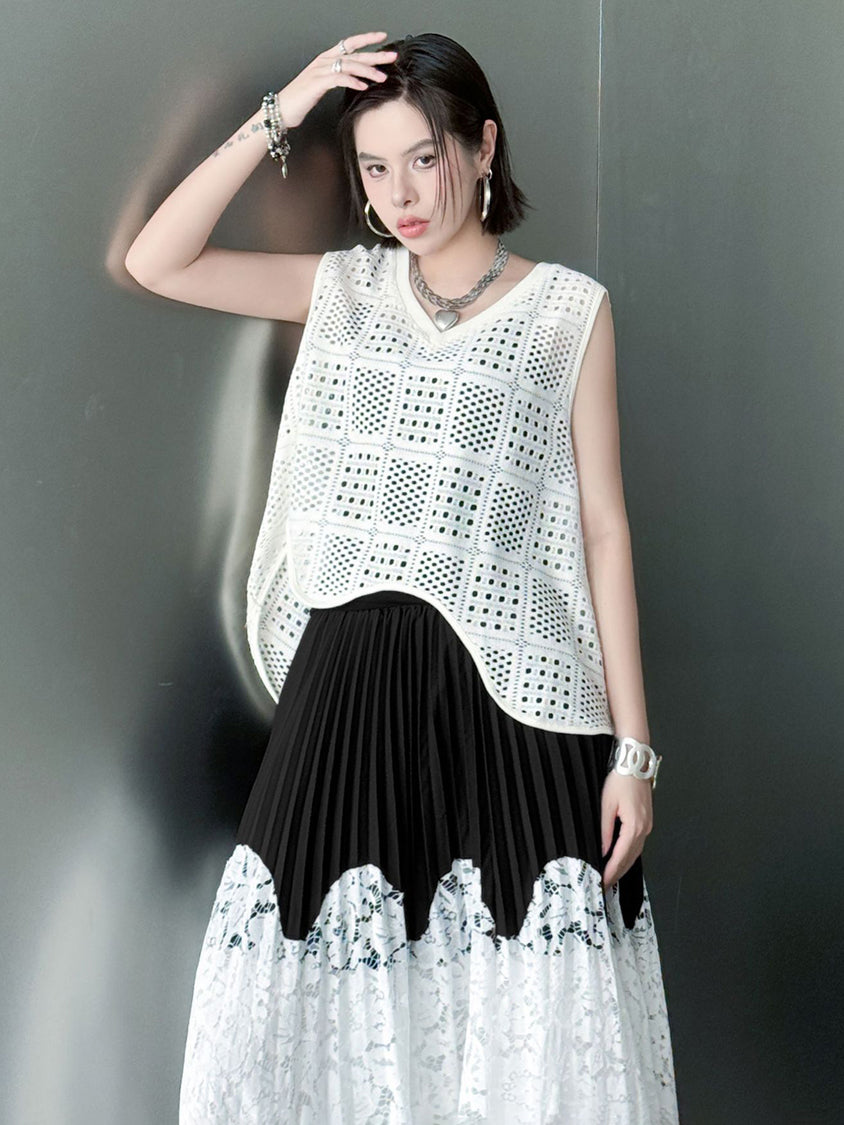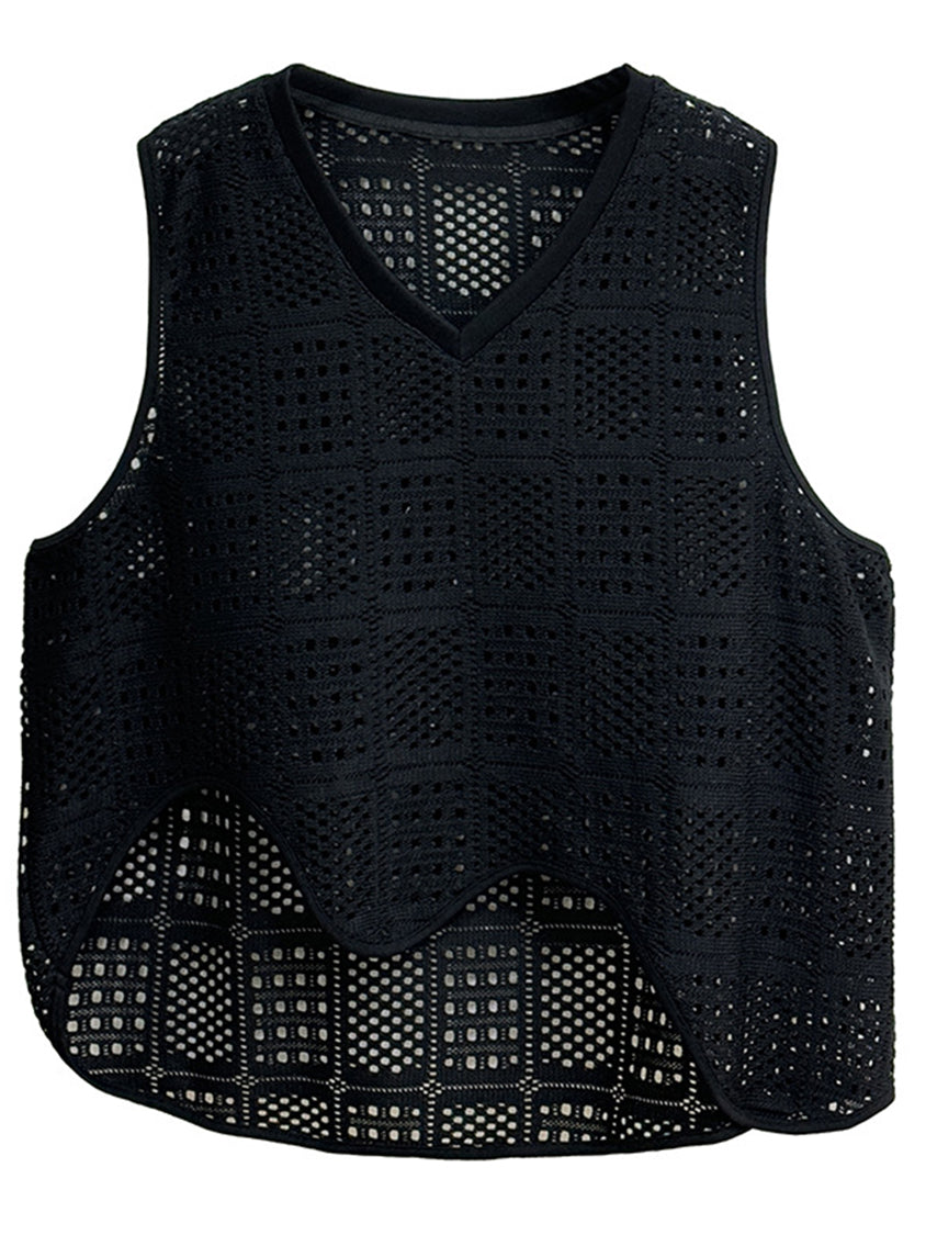 幾何学的なパンチングが映える、ミニマルモードなノースリーブトップス。