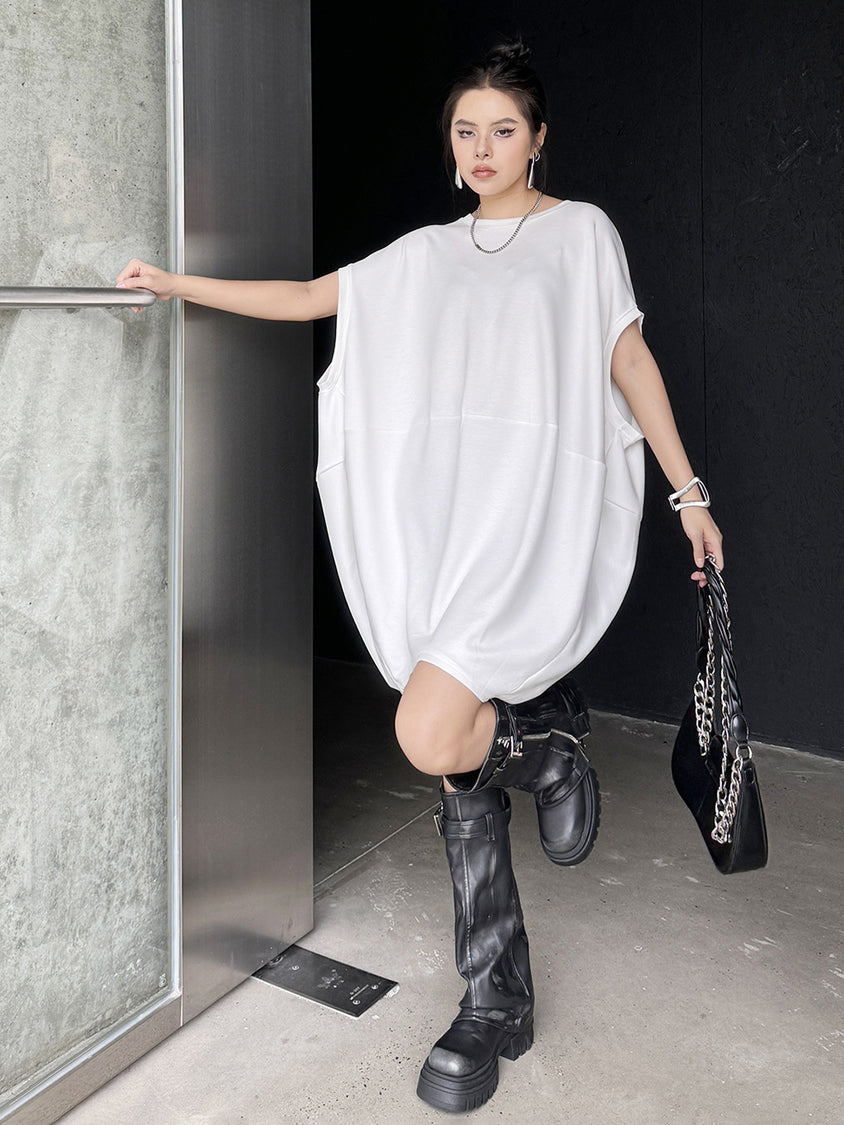 流れるようなドレープと、空気を含んだような立体フォルムが美しいチュニックワンピース。