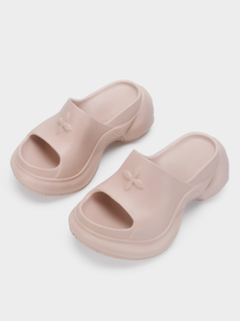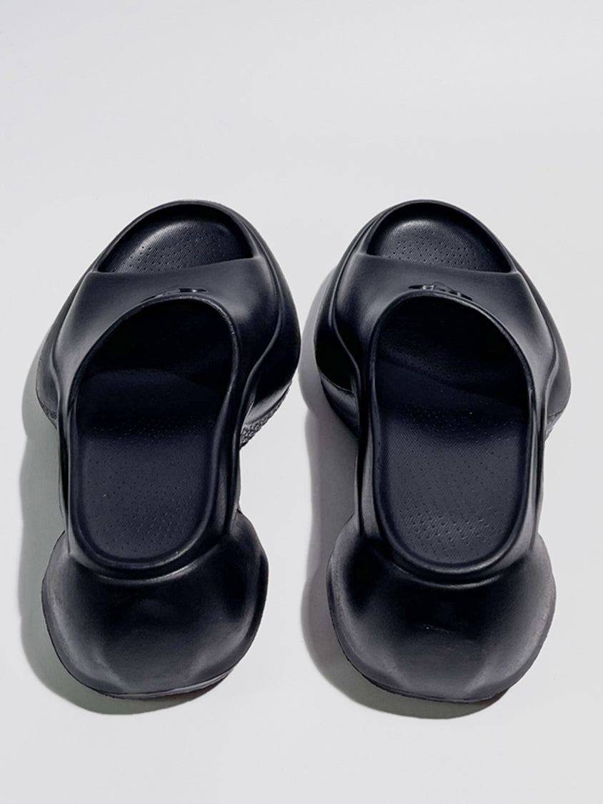 立体的な厚底ソールが視線を惹きつけるスリッポンサンダル。