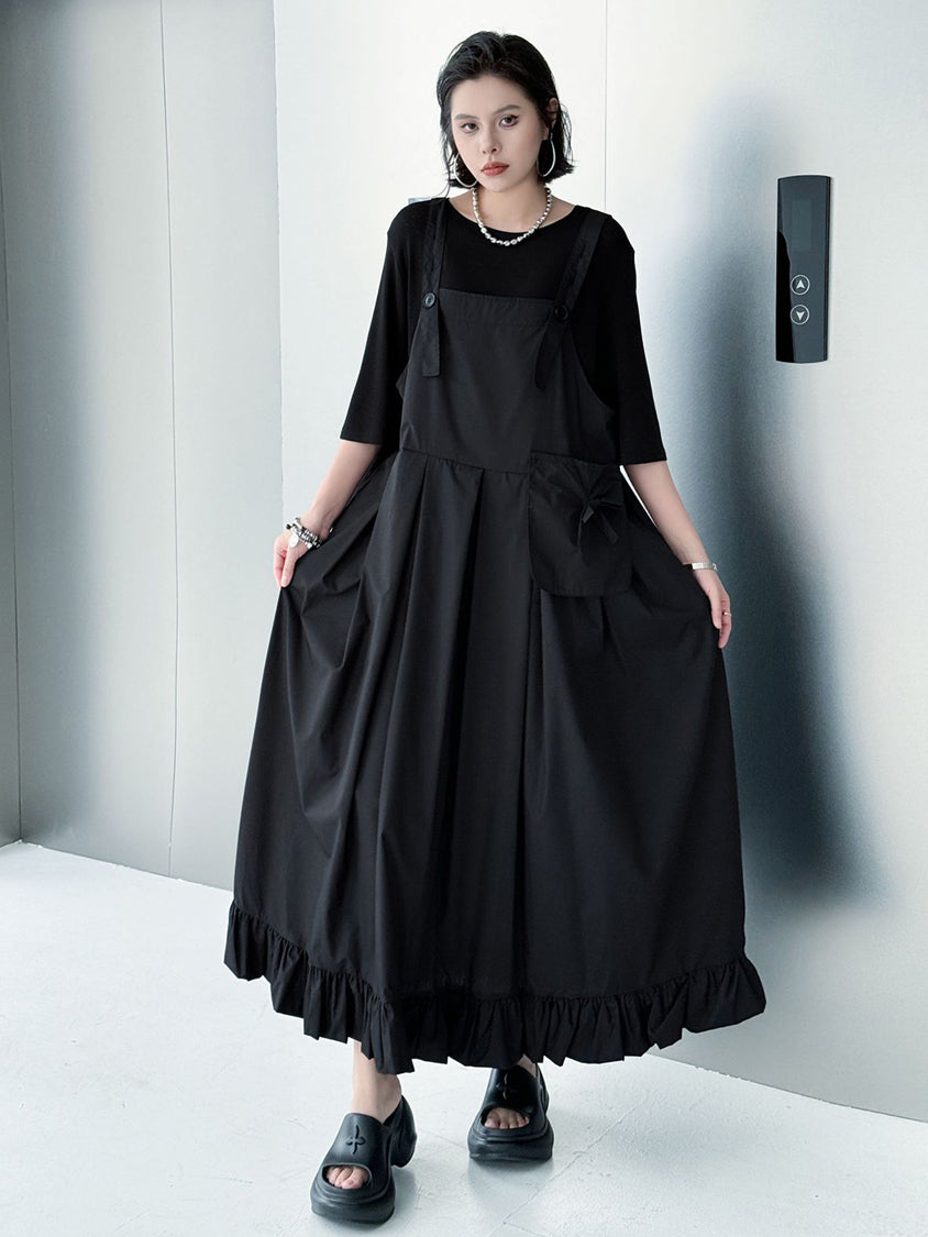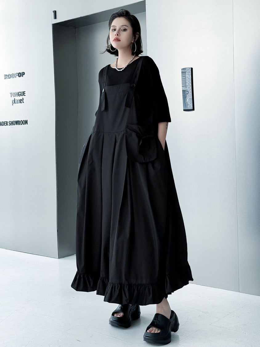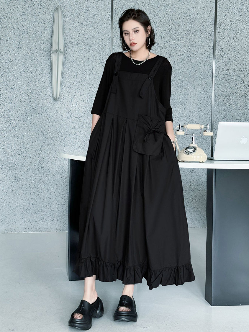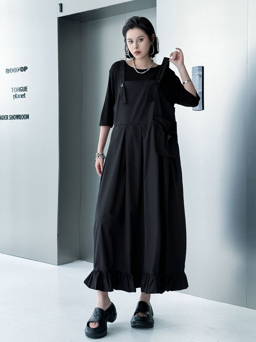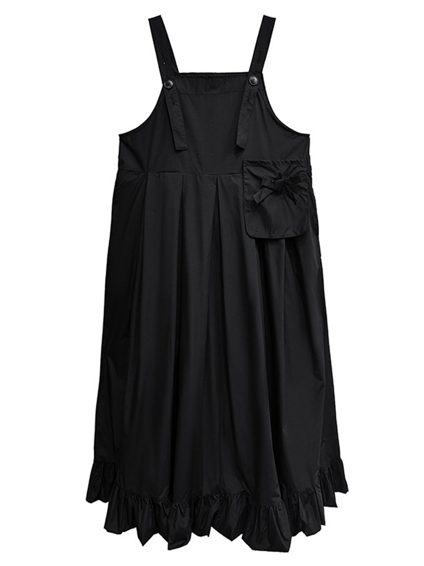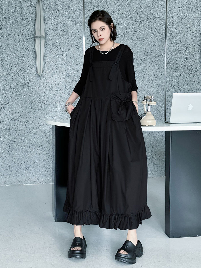 ストラップやボタン使いがワーク感を演出するジャンパードレス。