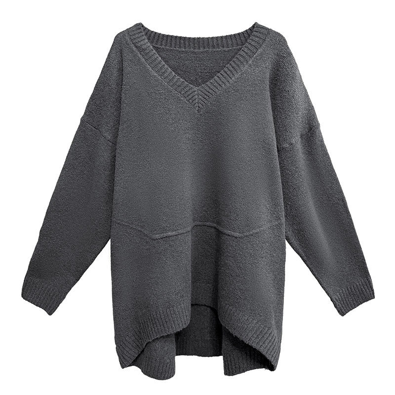 柔らかな質感のニット地で構成されたオーバーサイズVネックセーター。程よく厚みのある編みが立体感を生み、リラックスしたシルエットが自然な動きを描く。落ち感のある肩ラインと長めの裾リブが全体をまとめ、軽やかな抜け感をプラス。ミニマルながら存在感のあるデザインで、レイヤードにも適した構築的フォルム。