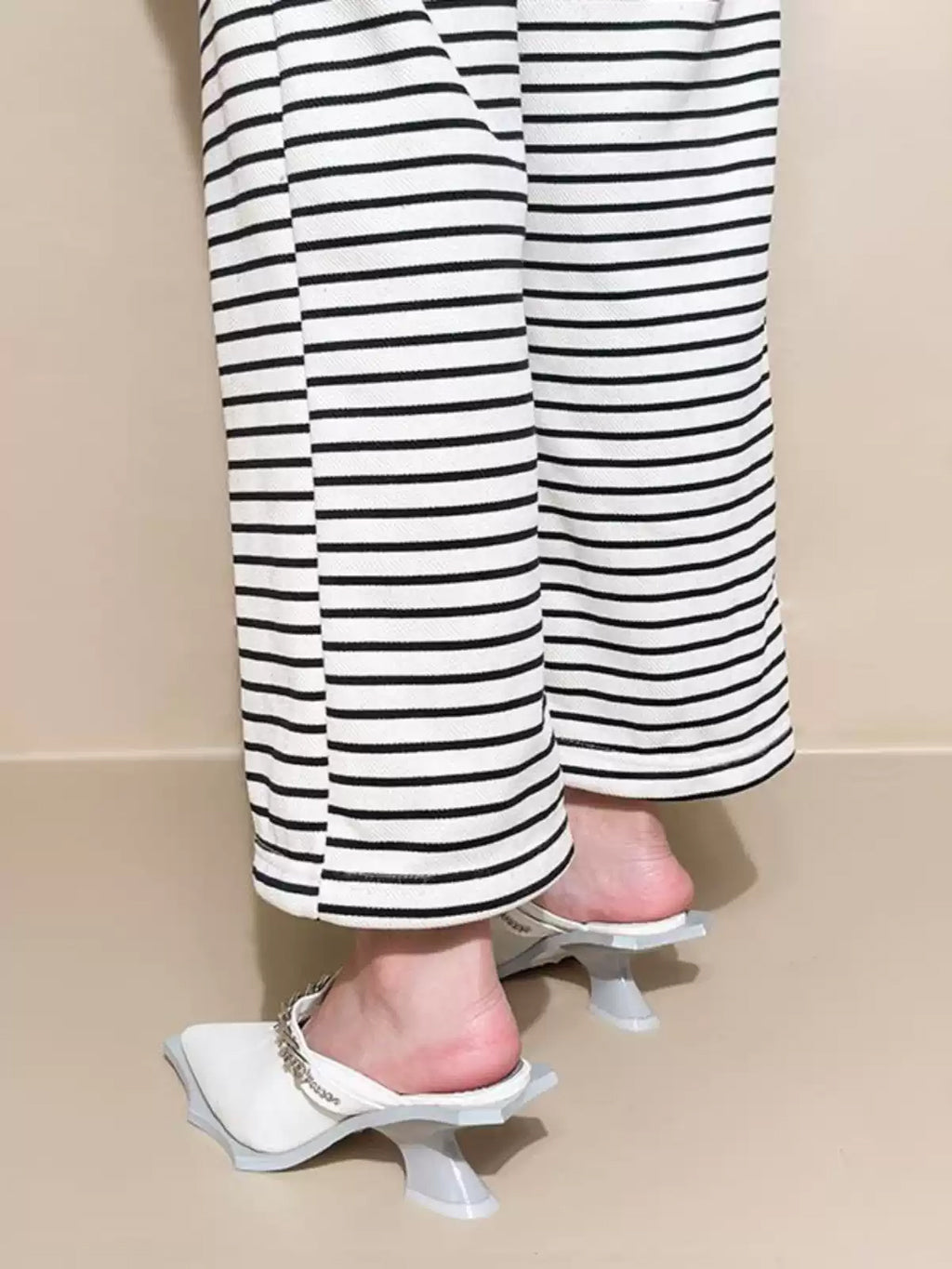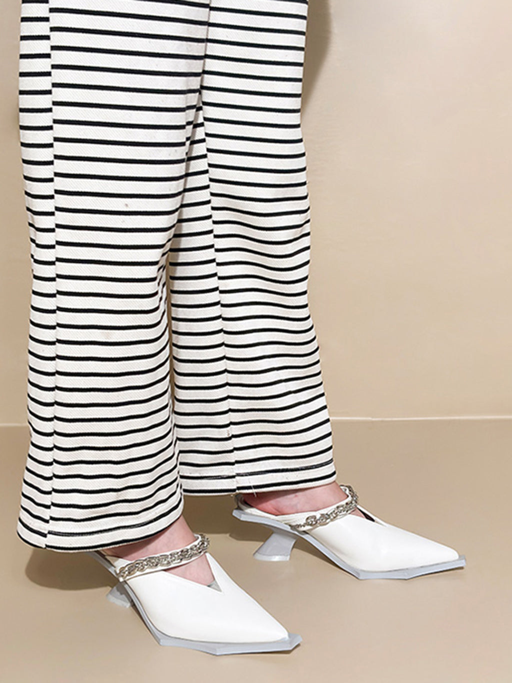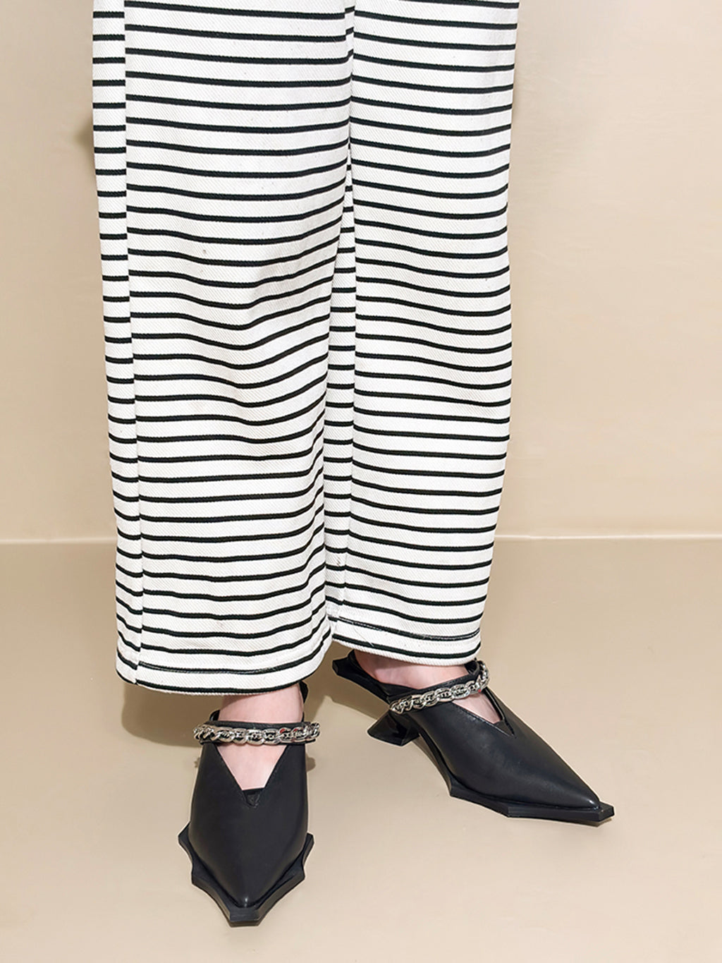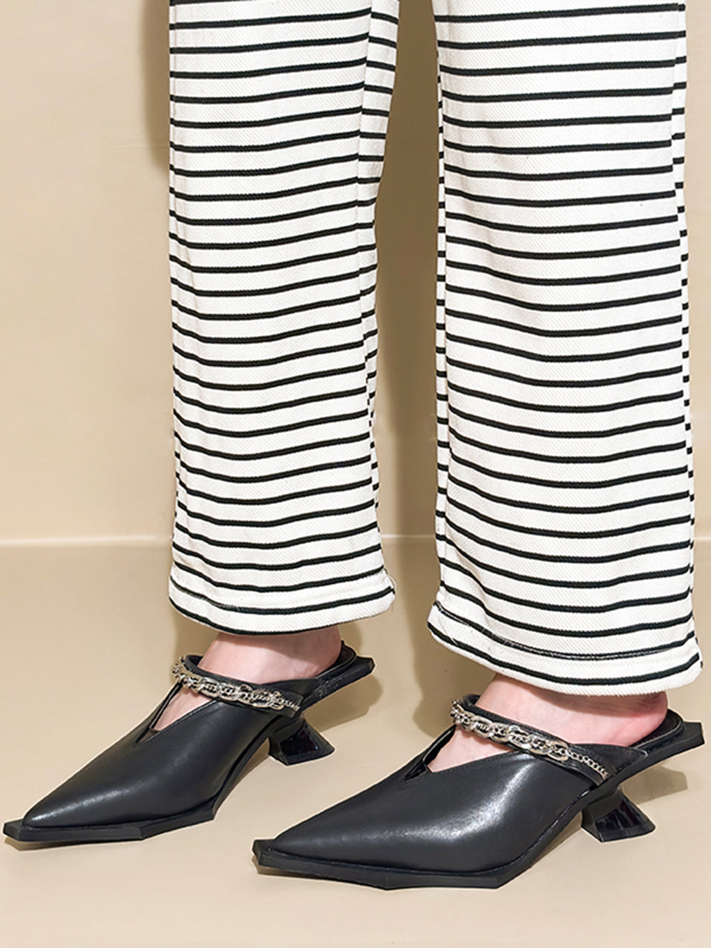 エッジの効いたシルエットが際立つ、個性的なミュール。