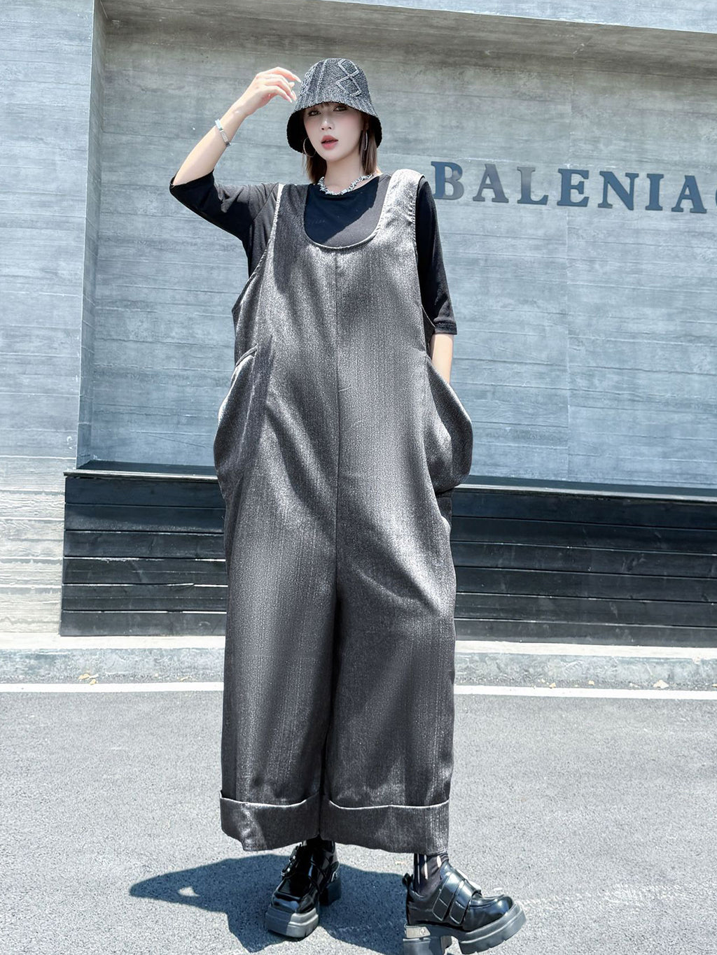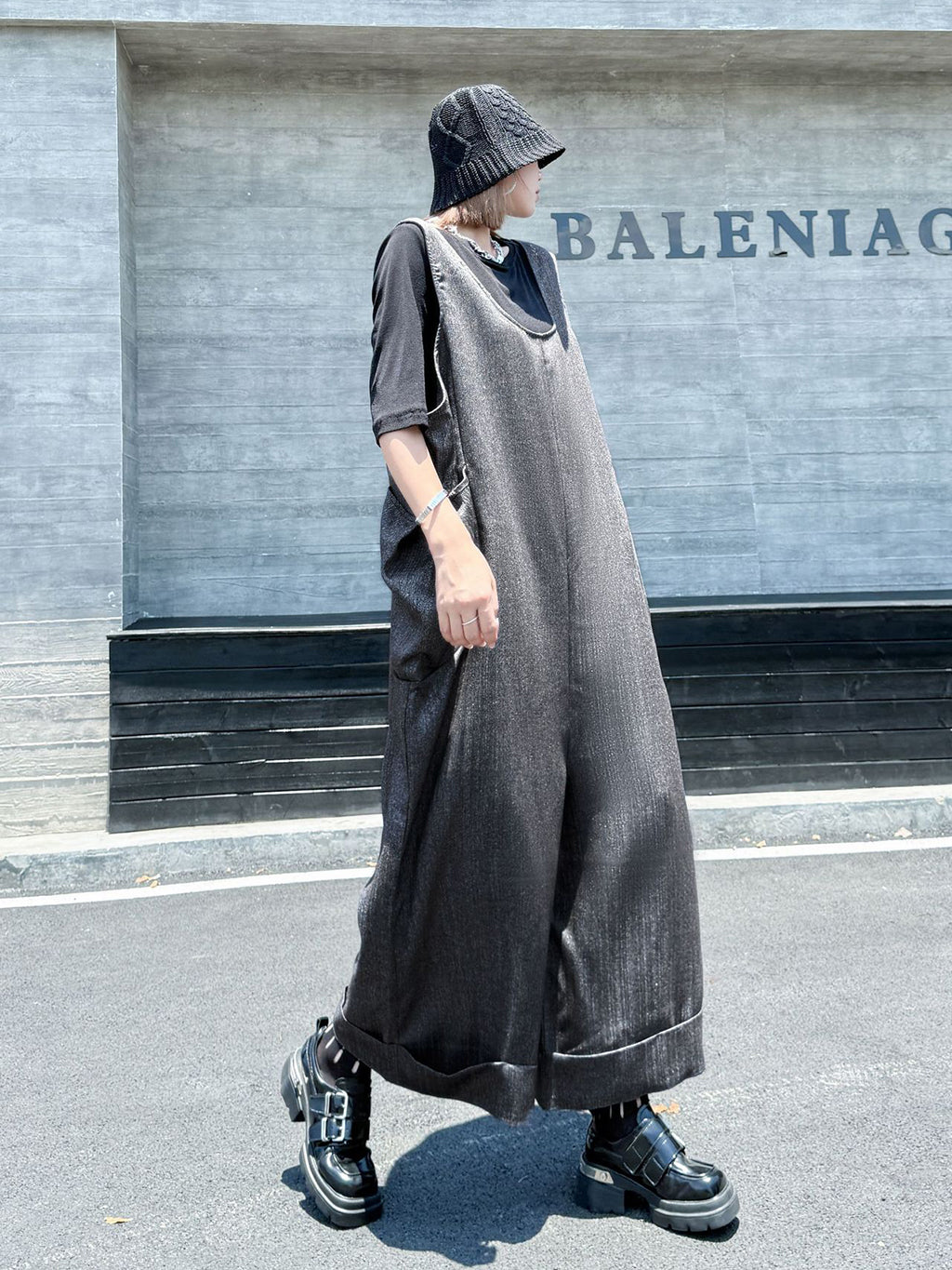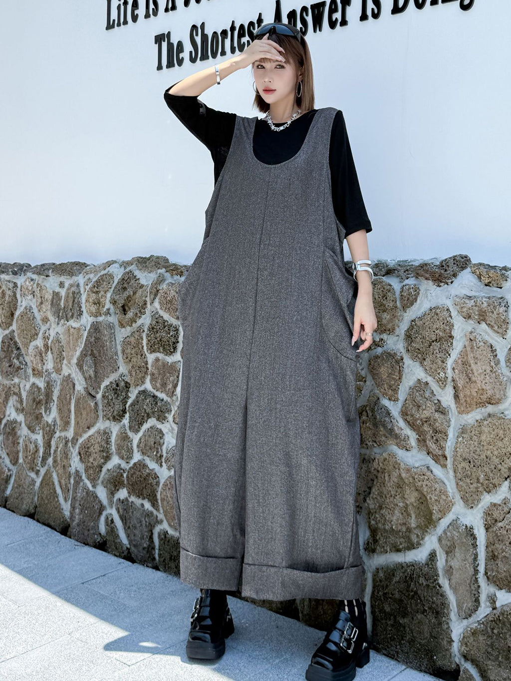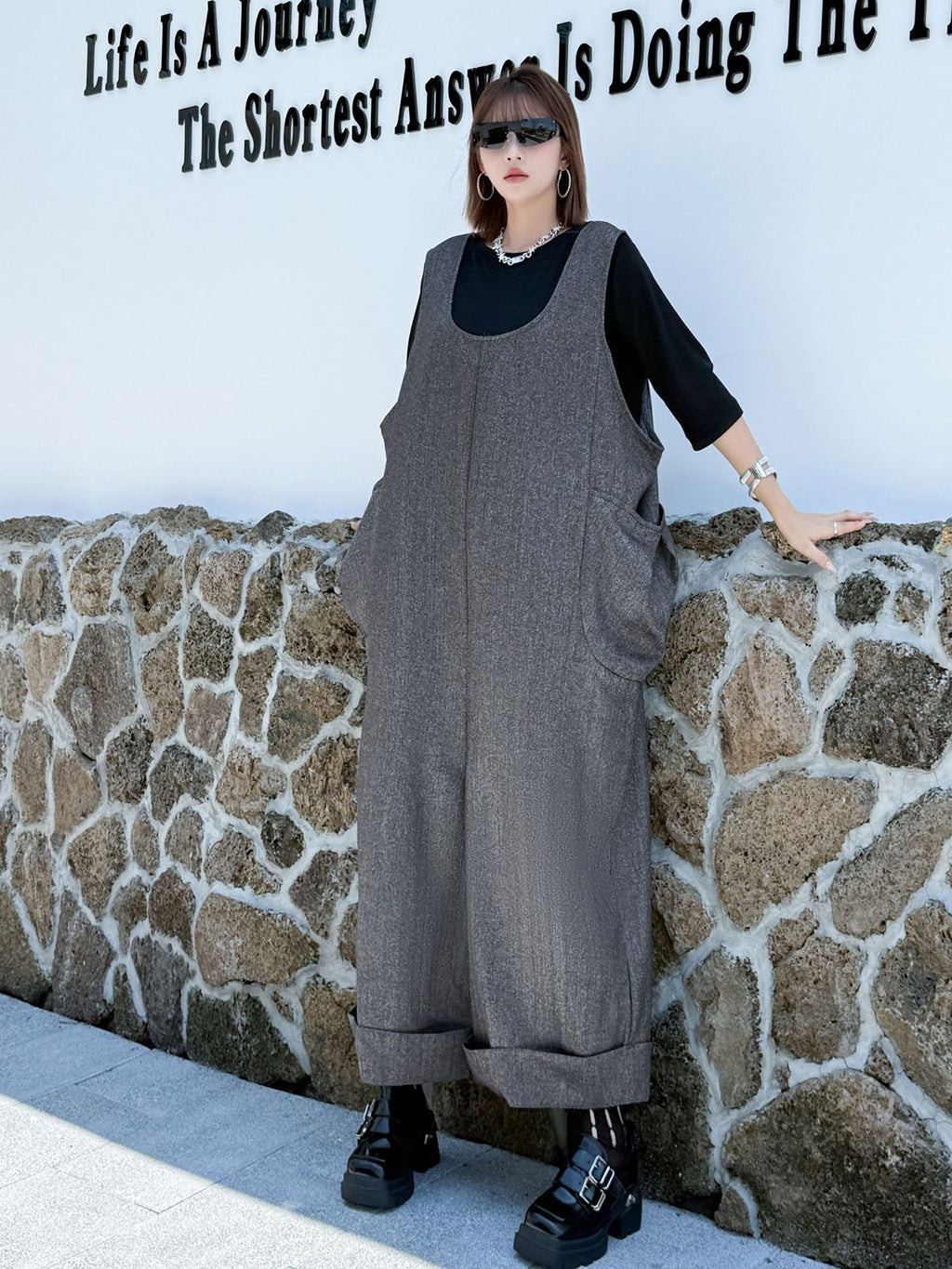 ソリッドな質感の生地に、ゆとりあるワイドシルエットが融合したジャンプスーツ。フロントに大ぶりな立体ポケットを配し、構築的でインパクトのあるルックスに仕上げられている。肩からストンと落ちるシルエットが体のラインを拾わず、レイヤードも自在。裾のカーブデザインが軽やかさを演出し、個性的なシルエットを引き立てる。