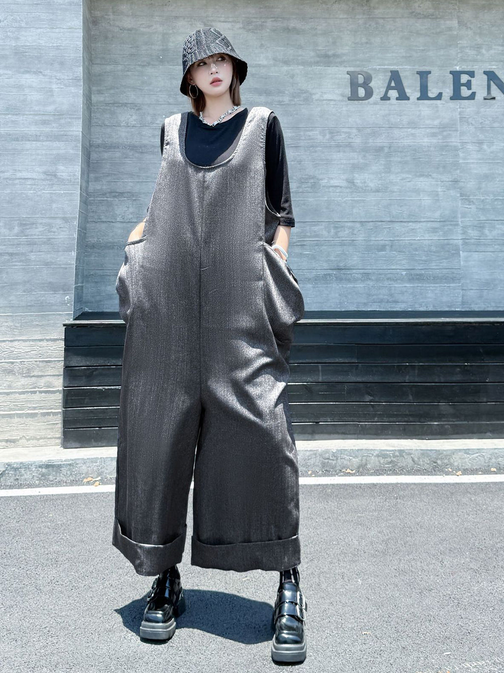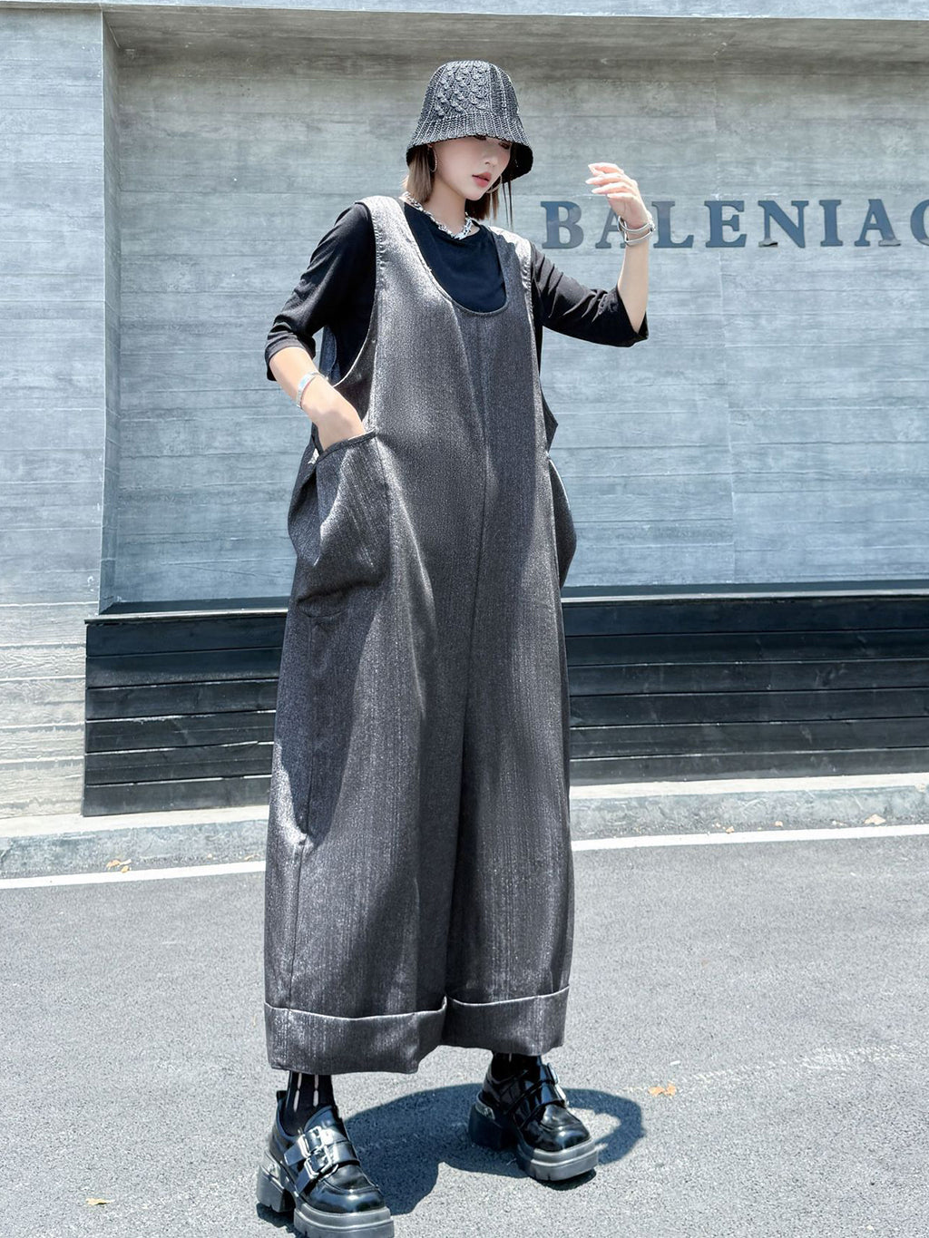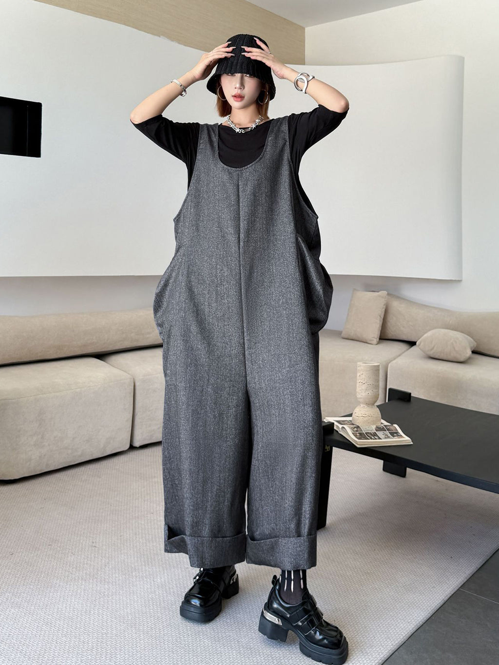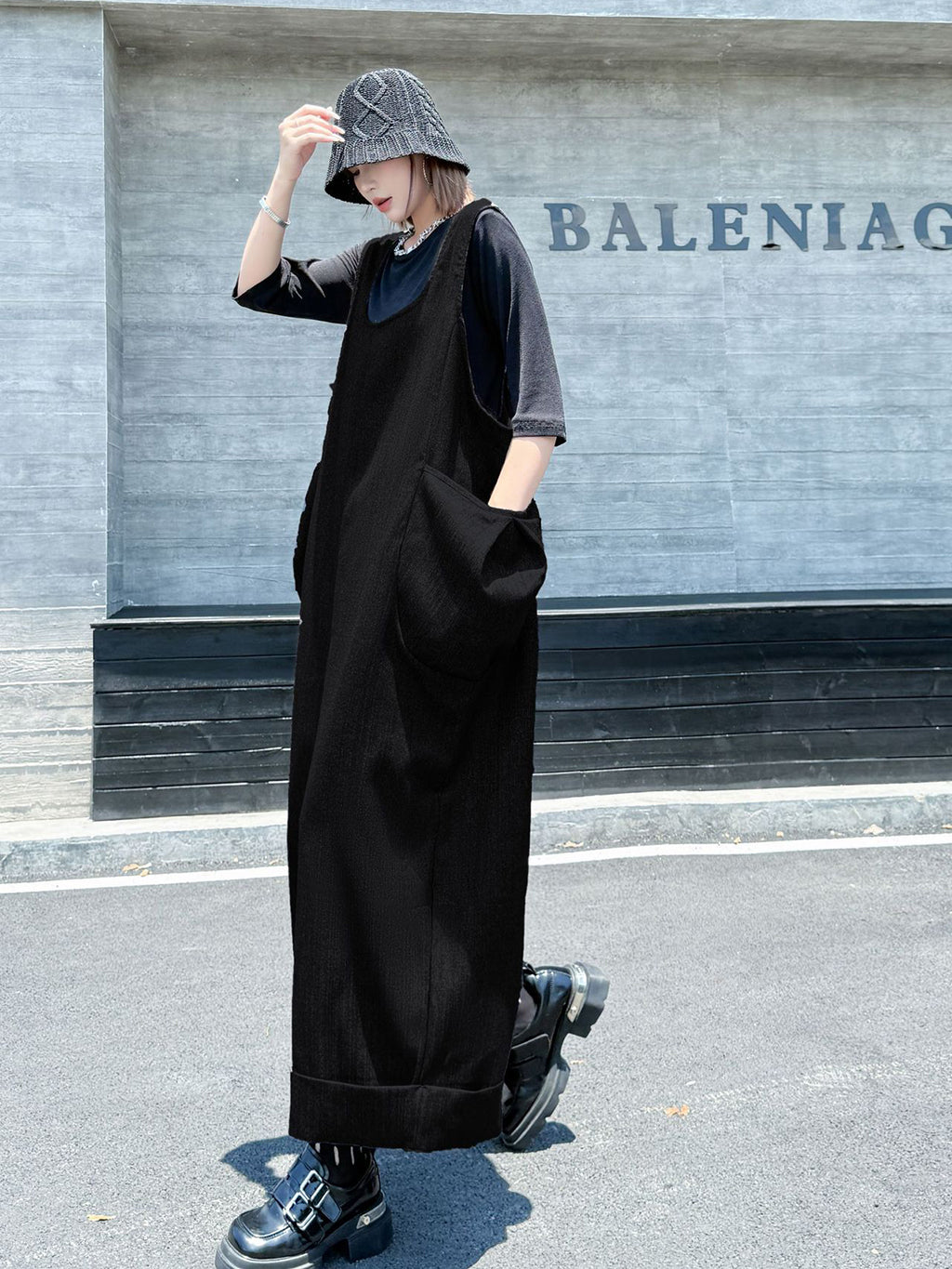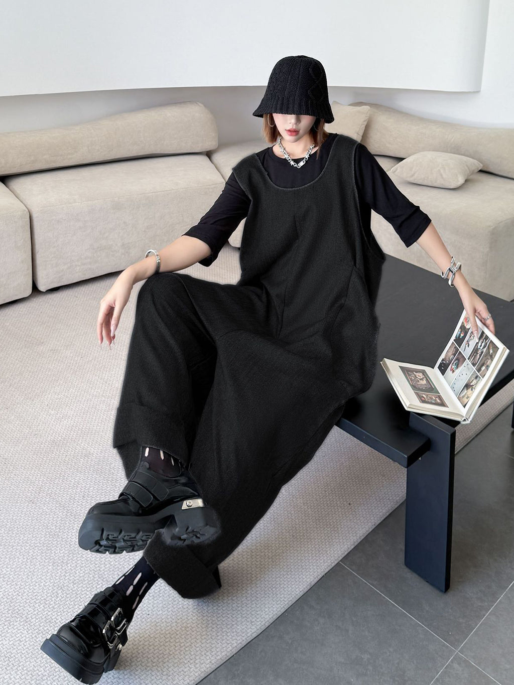 ソリッドな質感の生地に、ゆとりあるワイドシルエットが融合したジャンプスーツ。フロントに大ぶりな立体ポケットを配し、構築的でインパクトのあるルックスに仕上げられている。肩からストンと落ちるシルエットが体のラインを拾わず、レイヤードも自在。裾のカーブデザインが軽やかさを演出し、個性的なシルエットを引き立てる。