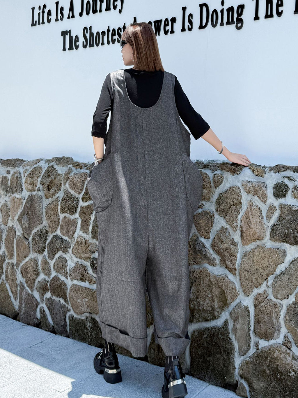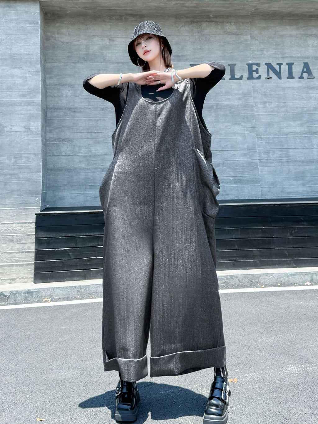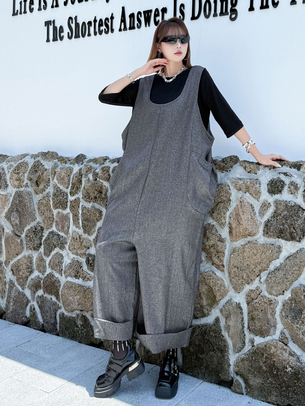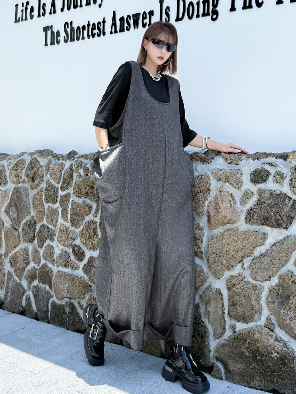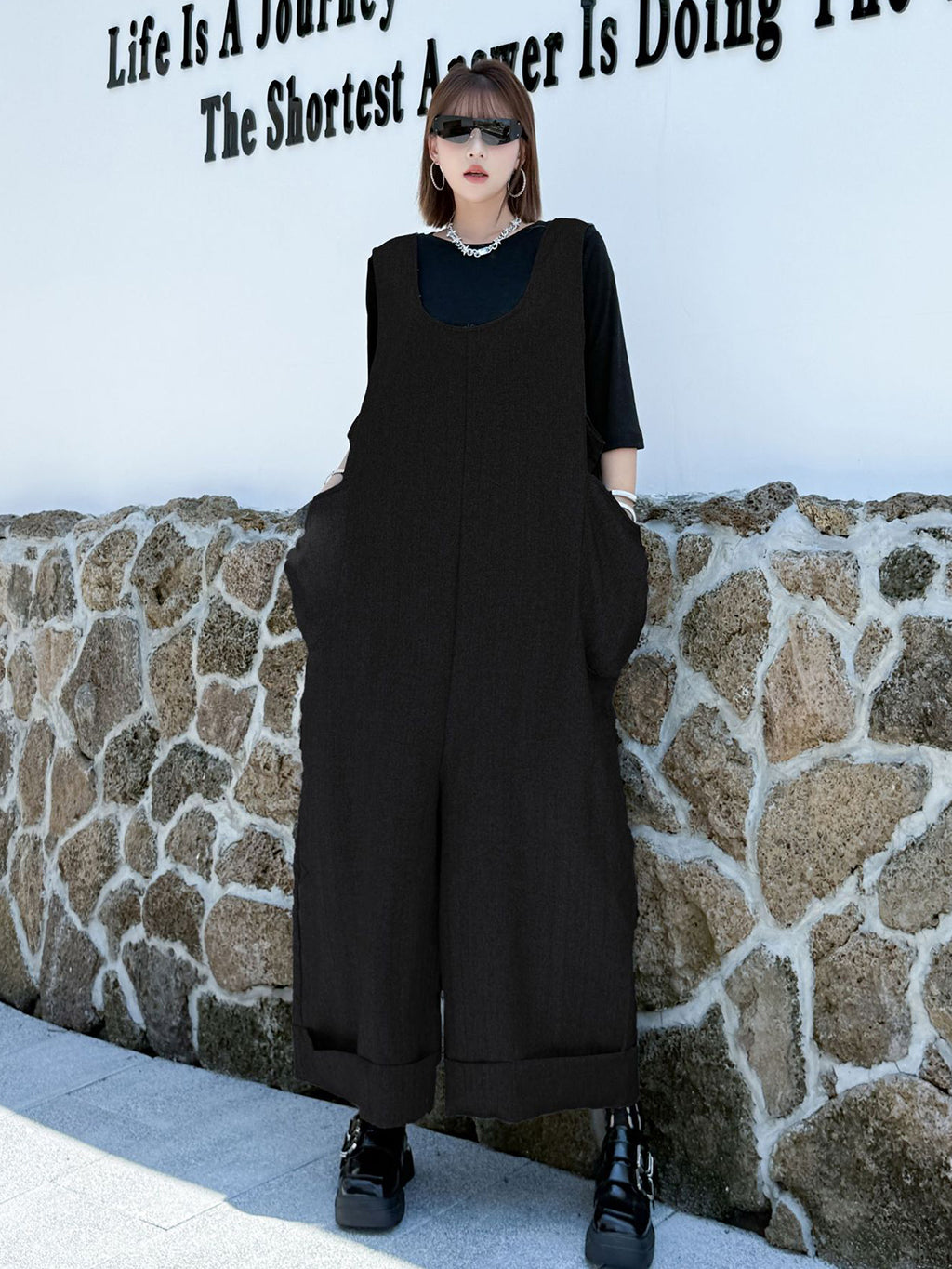 ソリッドな質感の生地に、ゆとりあるワイドシルエットが融合したジャンプスーツ。フロントに大ぶりな立体ポケットを配し、構築的でインパクトのあるルックスに仕上げられている。肩からストンと落ちるシルエットが体のラインを拾わず、レイヤードも自在。裾のカーブデザインが軽やかさを演出し、個性的なシルエットを引き立てる。